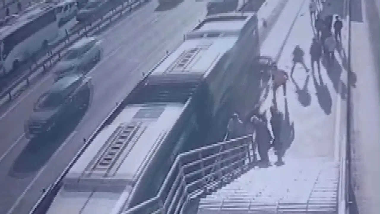 Yaşanan kaza anı çevredeki güvenlik kamerası tarafından kaydedildi. Görüntülerde, tekerlekli sandalyesiyle metrobüs yoluna düşen Hüseyin C.’ye metrobüsün çarptığı anlar yer aldı.